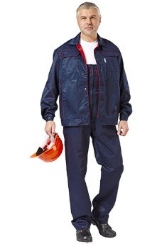 Цвет:синий с красным кантом.Ткань: смесовая(50% полиэфир, 50% хлопок) пл.215 г/м2, ВО. ГОСТ 27575-87