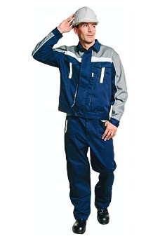 Цвет: темно-синий с серой отделкой. Ткань: смесовая(65% полиэфир, 35% хлопок) пл.215 г/м2, ВО. ГОСТ 27575-87