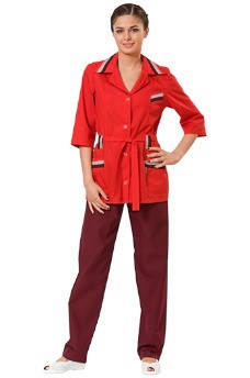 Цвет: красный с бордовым и светло-серой отделкой; Ткань: смесовая(65% полиэфир, 35% хлопок) пл.130 г/м2, ВО; ГОСТ 9896-88