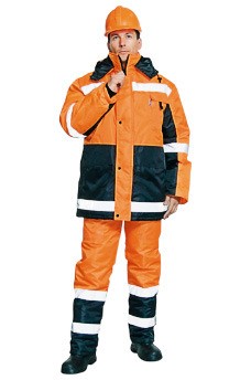 Цвет: оранжевый с черным. Ткань верха: "Оксфорд" (100% полиэфир), пл.210 г/м2,ВО; Подкладка: 100% полиэфир; Утеплитель: синтепон, в куртке 360 г/м2, в полукомбинезоне 240 г/м2; ГОСТ Р 12.4.236-2007