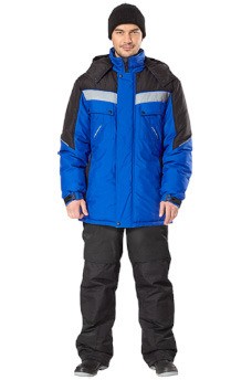 Цвет: васильковы с черной отделкой. Ткань верха: «Таслан» (100% полиэфир) Утеплитель: синтепон 360 г/м².Подкладка: 100% п/э, флис.Защитные свойства: Тнв Ми З Ву. ГОСТ Р 12.4.236-2011