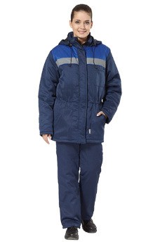 Цвет: темно-синий с васильковой отделкой. Ткань верха: 50% хлоп., 50% полиэфир. Подкладка 100% полиэфир. Утеплитель: синтепон 400 г/м2. Защитные свойства Тнв Ми З Ву. ГОСТ 12.4.236-2011