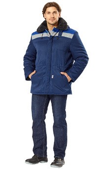 Цвет: темно-синий с васильковой отделкой. Ткань верха: "Восток", 100% полиэфир. Подкладка: 100% полиэфир. Утеплитель: синтепон 360 г/м2. Защитные свойства: Тн Ми З Ву. ГОСТ 29335-92