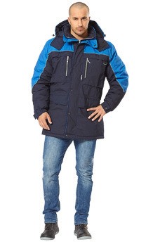 Цвет: синий с васильковым; Ткань верха: смесовая "Сису"(65% полиэфир, 35% хлопок) пл.139 г/м2, ВО; Подкладка: 100% полиэфир; Утеплитель: синтепон 360 г/м2; ГОСТ Р 12.4.236-2007