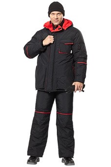 Цвет: черный с красной отделкой. Ткань верха: «Taslan». Подкладка: 100% вискоза + синтепон 100 г/м2. Утеплитель: холлофайбер (в куртке: 350 г/м², в брюках: 250 г/м²). Тнв Ми З Ву. ГОСТ Р 12.4.236-2007
