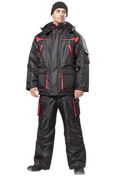 Цвет: черный с красным. Ткань верха: «Оксфорд» (100% полиэфир). Утеплитель: синтепон; в куртке - 360 гр/м²; в брюках 240 гр/м².Подкладка: 100% п/э, Флис. Защитные свойства: Тнв Ву Ми З. ГОСТ Р 12.4.236-2007