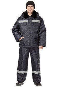 Цвет: темно-синий;Ткань верха: "Оксфорд "(100% полиэфир); Подкладка: 100% полиэфир; Утеплитель:синтепон, в куртке 400 г/м2, в брюках 300 г/м2; ГОСТ Р 12.4.236-2007