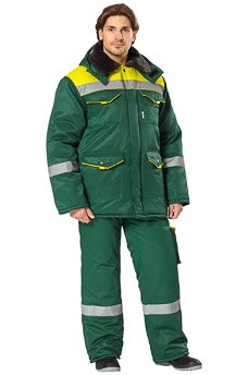 Цвет: зеленый с желтым;Ткань верха:гретта (50% полиэфир, 50% хлопок) пл.215 г/м2,ВО;Подкладка: 100% полиэфир;Утеплитель: синтепон, в куртке 360 г/м2, в брюках 240 г/м2;ГОСТ 29335-92 по типу «А»